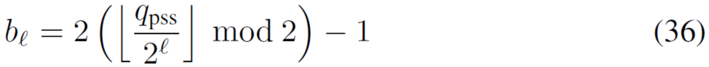 为了确保正确解释(35)和(36),我们列出了PSS子序列的前8个值: