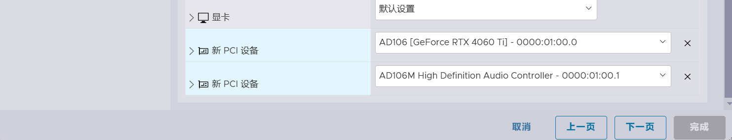 在“虚拟机设置”中,点击“添加其他设备” > “PCI设备”,在列表中找到并勾选NVIDIA显卡(例如,0000:01:00.0)。