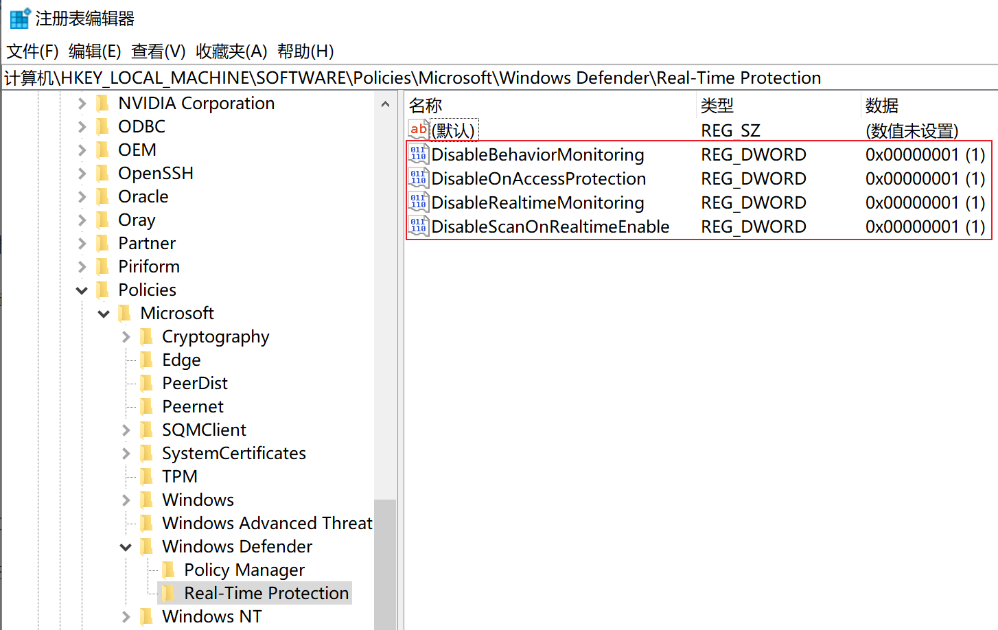 DisableRealtimeMonitoringREG_DWORD1 - 键