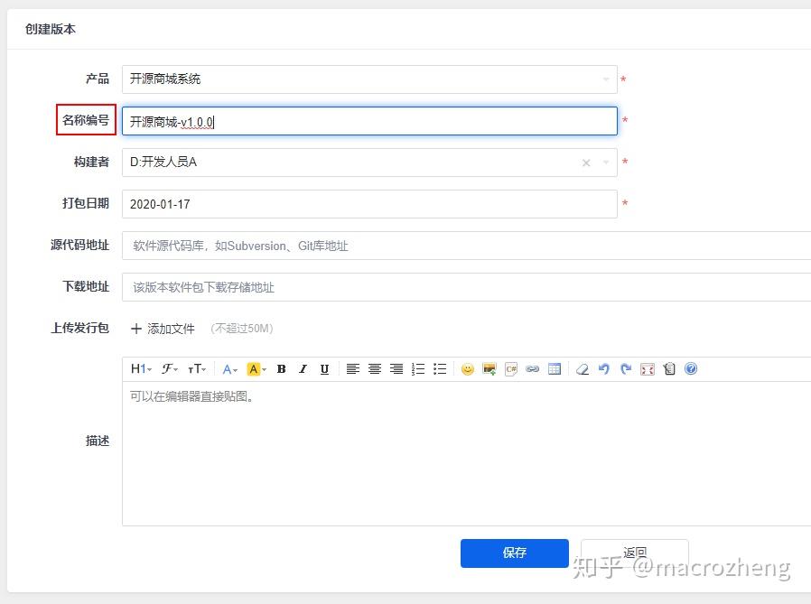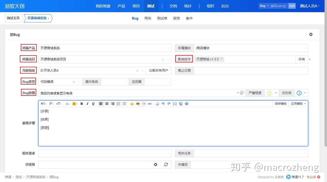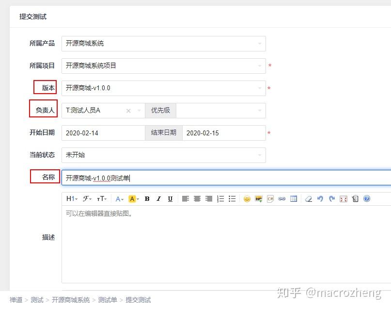- 创建测试单需要完善版本、负责人、名称等信息: