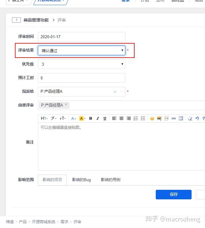 - 评审时选择评审结果为确认通过后该需求就会被激活了: