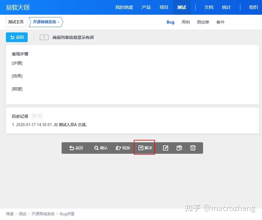 - 当开发人员解决完Bug后可以把Bug标记为已经解决: