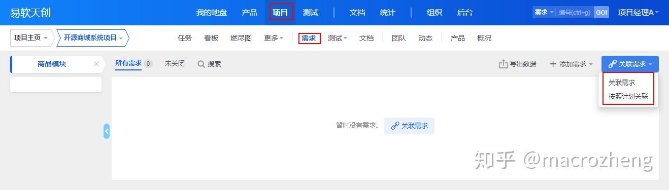 - 然后通过关联需求即可确定当前项目要做的需求,可以选择关联需求或按计划关联需求: