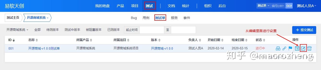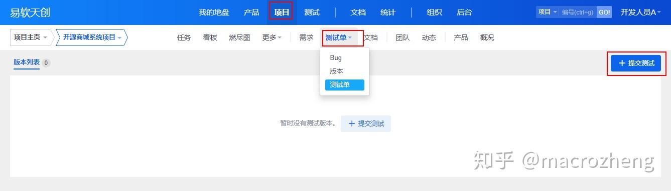 - 有了版本以后,才可以根据当前版本创建测试单: