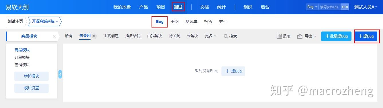 测试团队是项目质量的保证,测试团队主要负责对项目的版本进行测试,提出Bug指派给开发人员,开发人员解决Bug后对Bug进行验证并关闭。下面我们用测试人员的账号登录,来演示下测试人员在敏捷开发中所要做的事情。