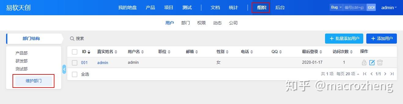 禅道安装成功之后,管理员的第一件要做的事情就是设置部门结构,并添加用户账号。