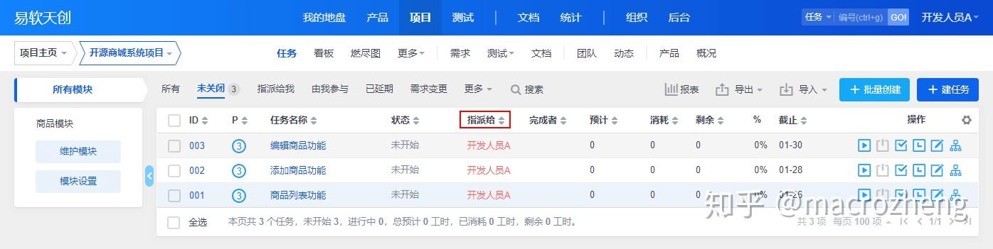 - 这里把商品管理功能这个需求分解为了商品列表、添加商品和编辑商品三个任务并指派给了开发人员。
