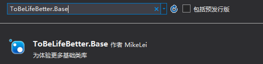 1.1 打开Nuget搜索ToBeLifeBetter.Base,直接安装