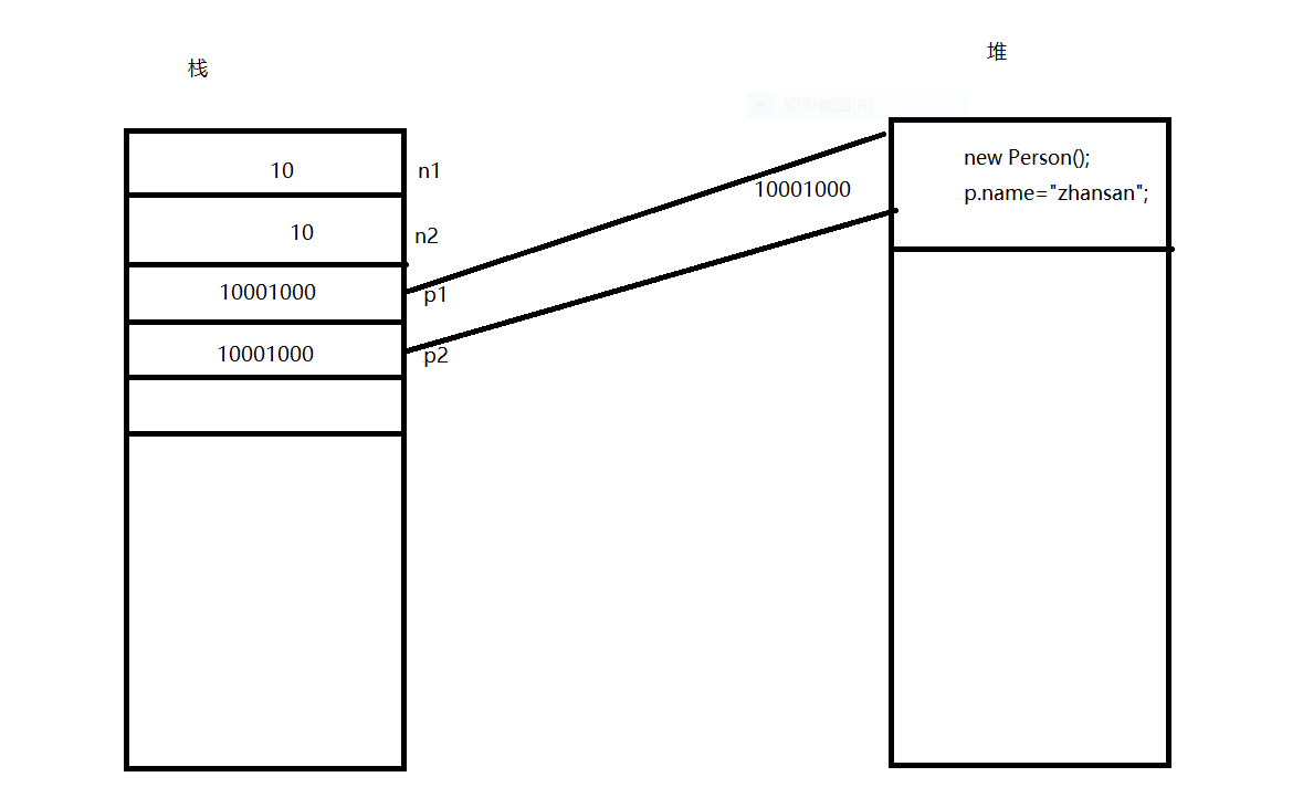 Rerson p2=p1;传递的仅仅是地址,p1与p2指向的是堆中的同一块存储单元,所以无论是p1的值还是p2的值发生改变,两者的值都会发生改变;
