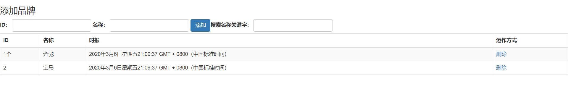 实现功能:web前端利用vue.js实现品牌列表的添加,删除与筛选功能