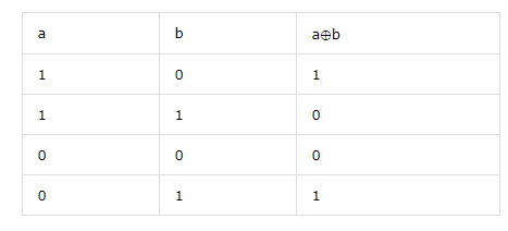 如果a、b两个值不相同,则异或结果为1。如果a、b两个值相同,异或结果为0。