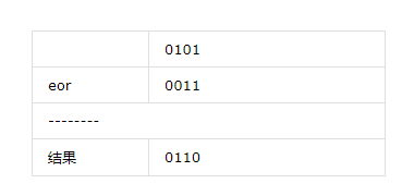 也就说0和1异或的时候相同的异或结果为0,不同的异或结果为1,根据上面的规律我们得到