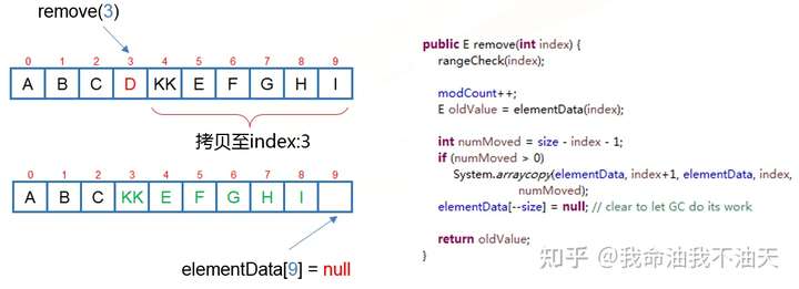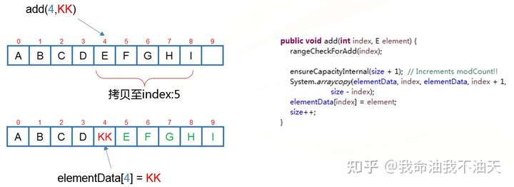 ArrayList使用数组拷贝来实现指定位置的插入和删除: