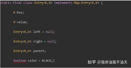 TreeMap是基于红黑树实现的Map结构,其Entry类拥有到左/右叶子节点和父节点的引用,同时还记录了自己的颜色:
