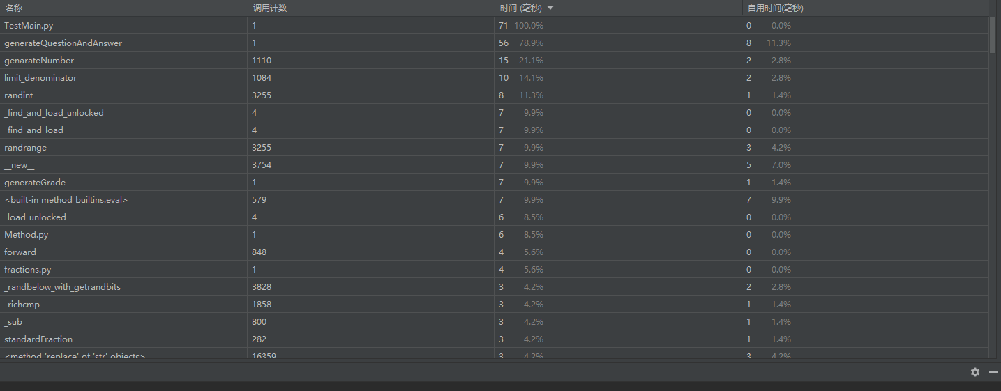 再性能改进上花了150分钟左右,在最开始只是很简单的完成了这个项目,当时大致的需求是达到了,但是当时只是生成自然数的加减乘除,而且乘除号都用了*和/,然后也没有判断生成的表达式是否跟之前生成的等价,在我们完成这个粗略的程序之后,我们才一点一点完善了这些性能。