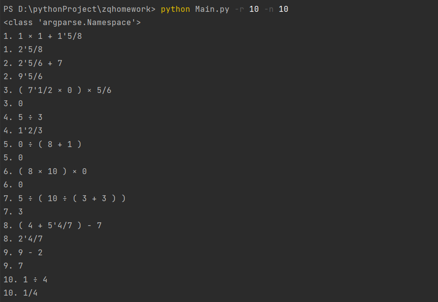 为了保证输出的结果时真分数,我们使用了Fraction().limit_denominator()将结果1近似为最接近的具有指定分母的分数。然后至于当分子大于分母的时候,我们会对结果进行处理,此部分代码如下: