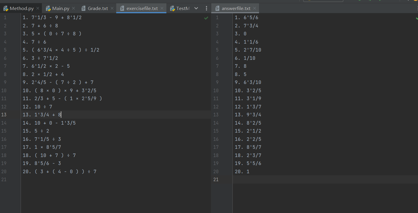 #基于所给定的文件newExerciseFile和newAnswerFile来给出计算的对错