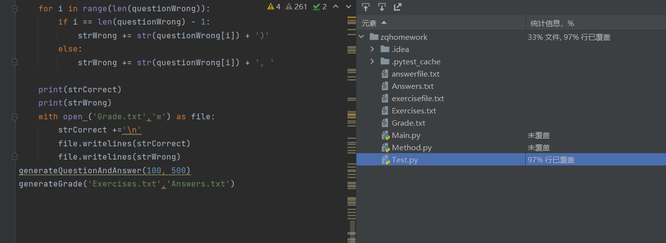 #在处理完异常之后,就进行第一个需求,生成相应数目的题目以及各自的答案,并将他们按照相应的形式存入文件中