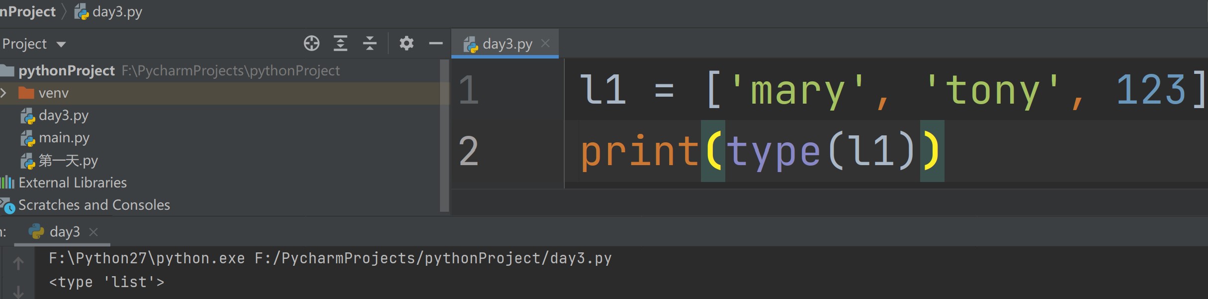 能够储存多个数据,使用中括号括起来,数据与数据之间用逗号隔开