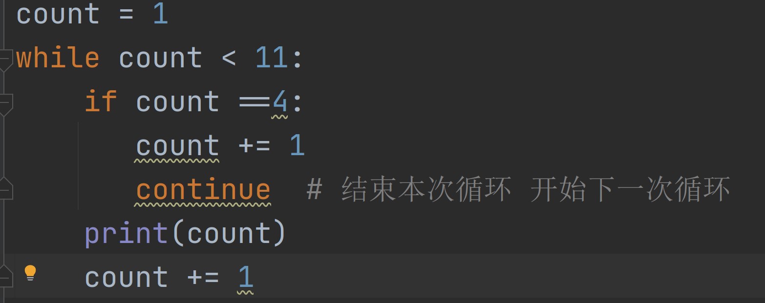 continu的作用是用于结束本次循环,直接开始下一个循环