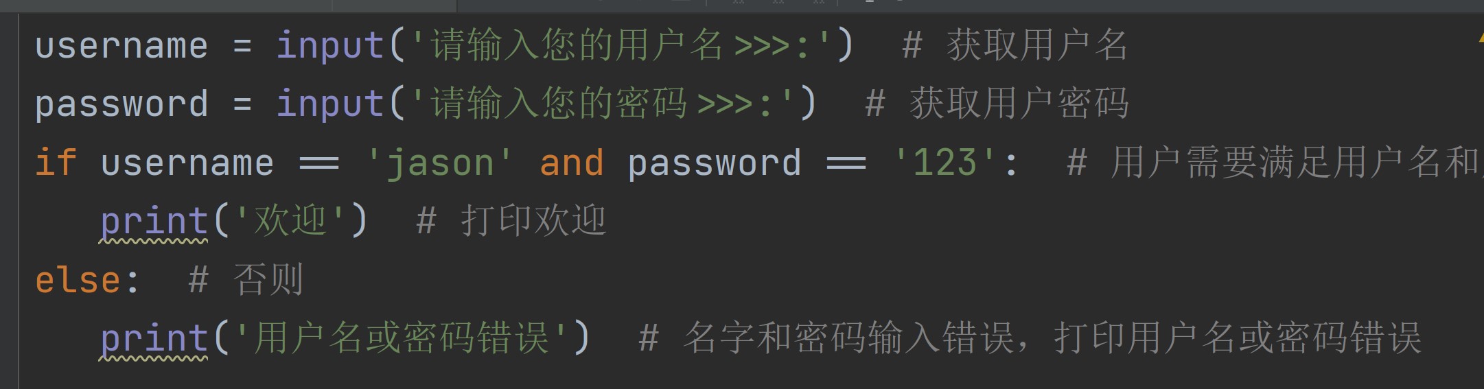 如果用户名是jason并且密码是123 则打印登录成功