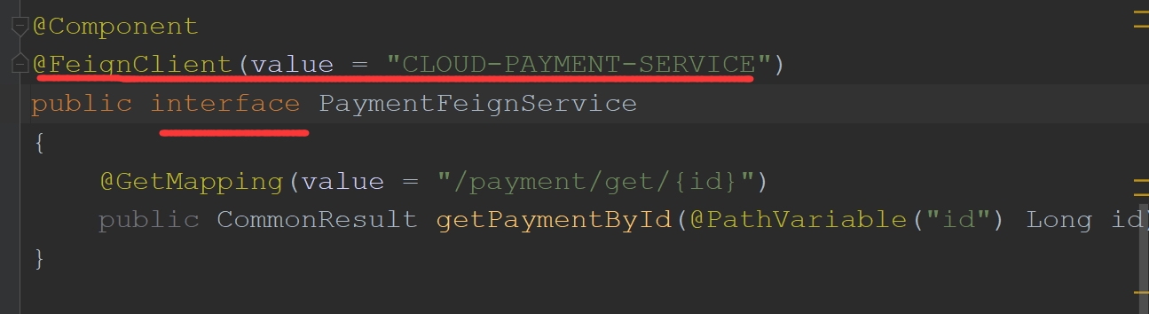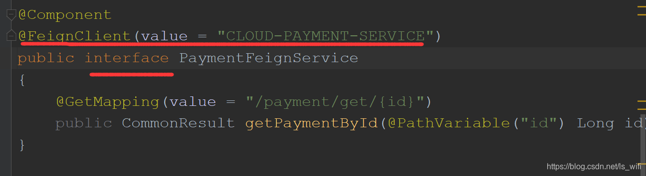 我原先很不理解实现类是怎么创建出来的,接口上标注Component是干啥的,一般不标注在类上吗?然后底层通过dom4j+反射(默认调用空参构造函数创建对象放入IOC容器中),根据自己的测试和百度,这个@FeignClient通过动态代理的方式把实现类创建出来,并把生成的代理对象放入IOC容器中,所以这里@Component不写也可以,亲测有效!