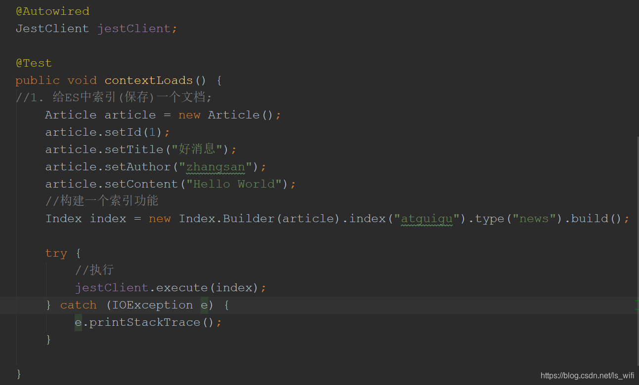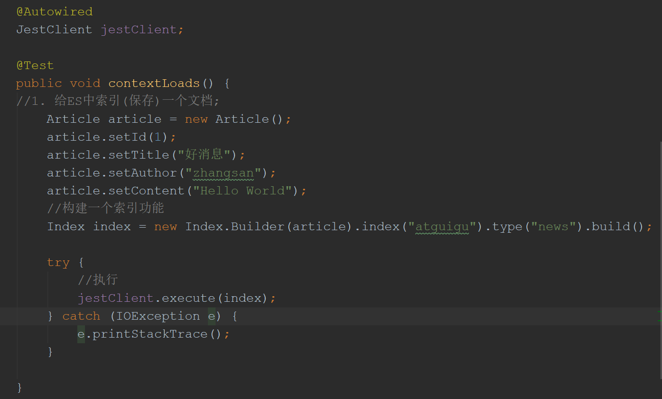 需要导入jest的工具包(io.searchbox.client.JestClient)