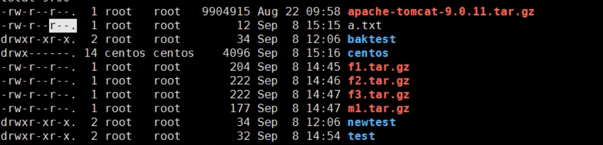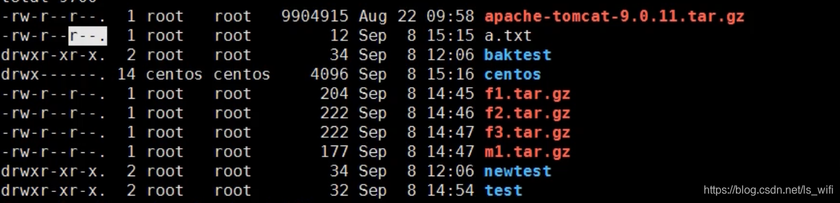 ll命令显示的 第1列:是来显示权限的 第2列:表示这个文件有多少个链接数(相当于多少快捷方式) 第3列:代表创建文件的所有者 第4列:一个组的名字,这个组有用户,这个用户能够对这个文件去做什么的 第5列: 文件的大小,字节为单位 第6列:文件创建时间 第7列: 当前的文件名称