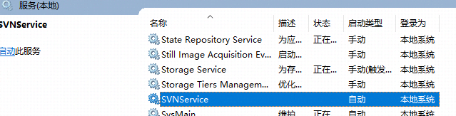 创建系统服务,服务名SVNService