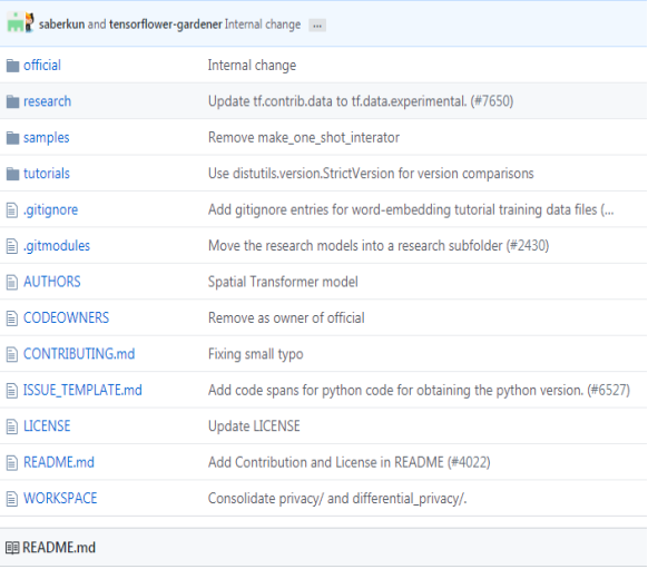 (1)这个目录中包含README文件让初次接触该代码的人快速了解该代码的结构,official是官方版本,research将tf.contrib.data更新为tf.data.experimental,sample中给出的是数据样本,tutorials是辅导教程,使用distutils.version.strictversion进行版本比较。