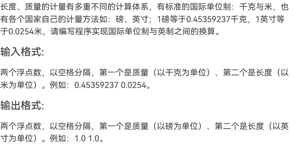 本题是对于质量和长度的单位换算,将千克换算为磅,米换算为英寸。