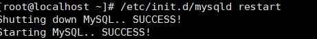 # /etc/init.d/mysqld restart 重启MySQL服务