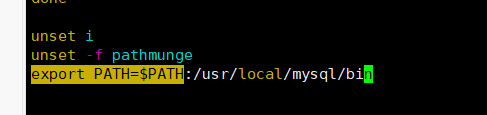 export PATH=$PATH:/usr/local/mysql/bin 在后面加上