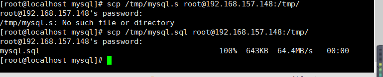 # scp /tmp/mysql.sql root@192.168.157.148:/tmp/