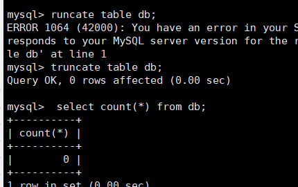 mysql> truncate table db;