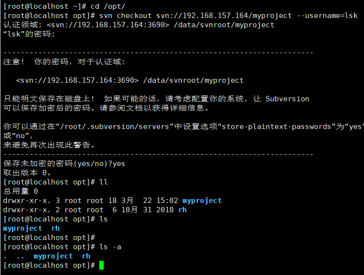 #svn checkout svn://192.168.174.128/myproject --username=lsk //拉取项目