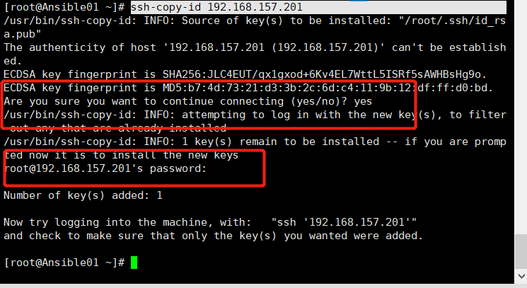 运行 ssh-copy-id 192.168.157.201