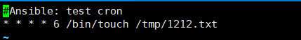 ansible testhost -m cron -a "name='test cron' job='/bin/touch /tmp/1212.txt' weekday=6"