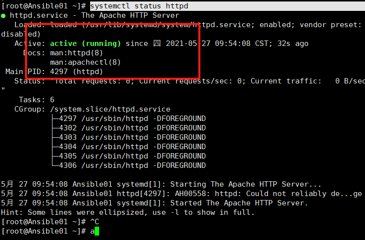 systemctl status httpd 检查状态