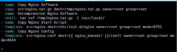 copy: src=nginx.tar.gz dest=/tmp/nginx.tar.gz owner=root group=root
