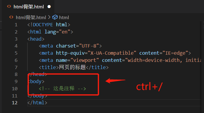 注释快捷键 ctrl+/ (浏览器不会渲染注释)