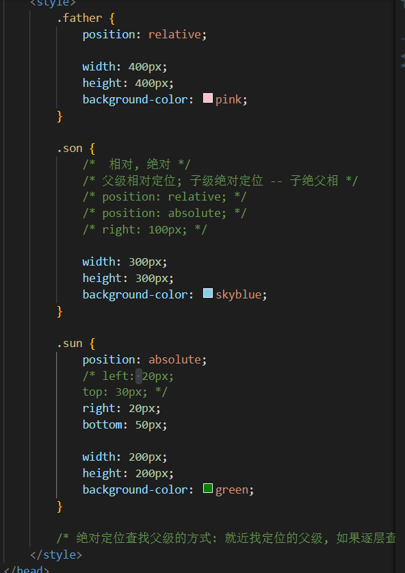 6. 子绝父相 (子absolute:这是相对定位 相父:relative 这是相对定位)