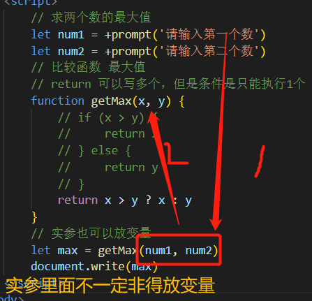 在调用的时候写传入参数,相当于写的公式,然后传参数,函数进行接收参数
