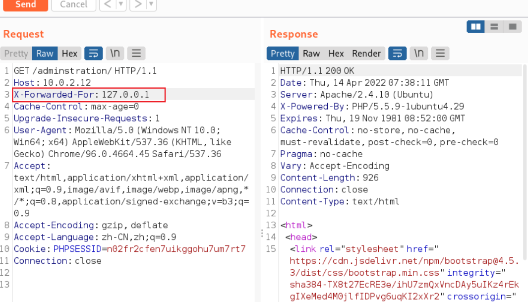 网上查找403 bypass方法, 通过burp拦截在请求头加上X-Forwarded-For: 127.0.0.1成功绕过