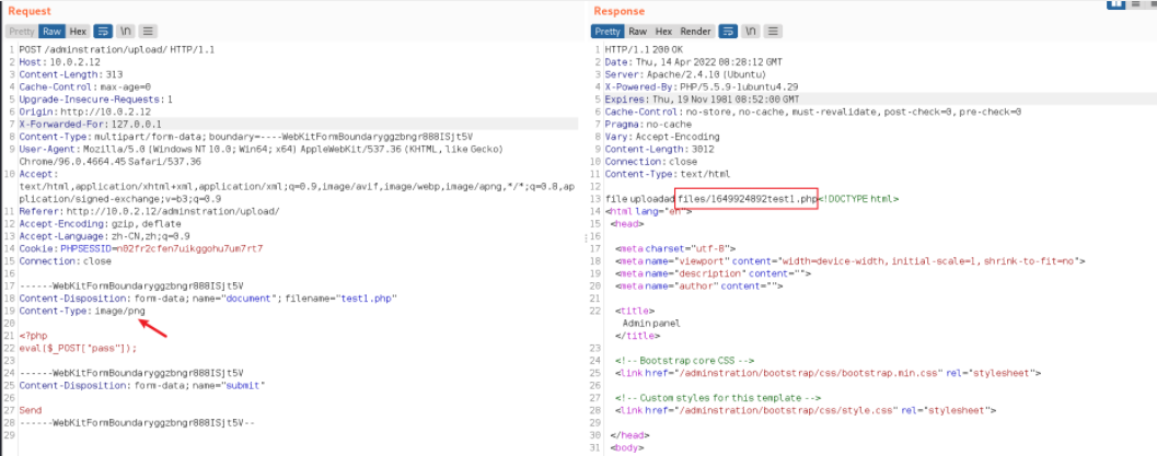 发现有文件上传功能,尝试上传木马。前面的路径爆破已经知道网站开发语言是php