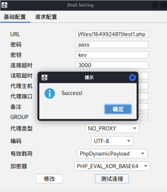 使用哥斯拉进行连接,成功连接。同样需要加上请求头