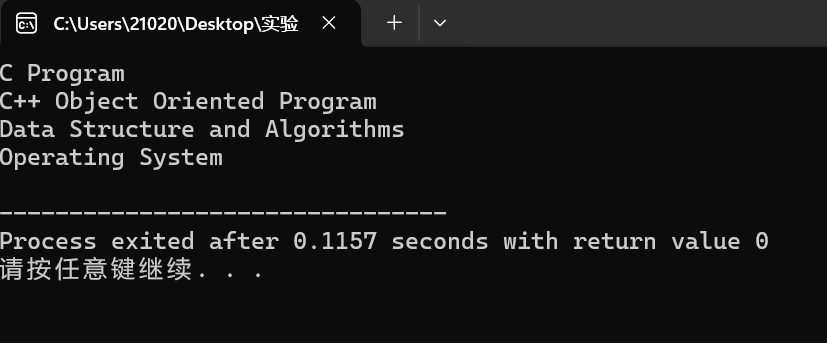 #include <stdio.h> #include <string.h> void sort(char *name[], int n); int main() { char *course[4] = {"C Program", "C++ Object Oriented Program", "Operating System", "Data Structure and Algorithms"}; int i; sort(course, 4); for (i = 0; i < 4; i++) printf("%s\n", course[i]); return 0; } void sort(char *name[], int n) { int i, j, k; char *tmp; for (i = 0; i < n - 1; i++) { k = i; for (j = i + 1; j < n; j++) if (strcmp(name[j], name[k]) < 0) k = j; if (k != i) { tmp = name[i]; name[i] = name[k]; name[k] = tmp; } } }