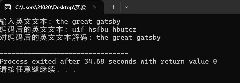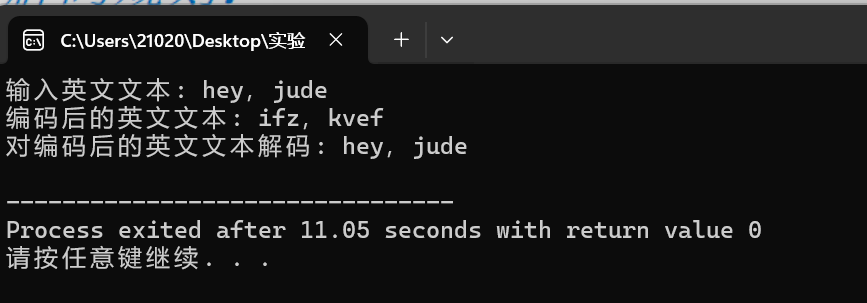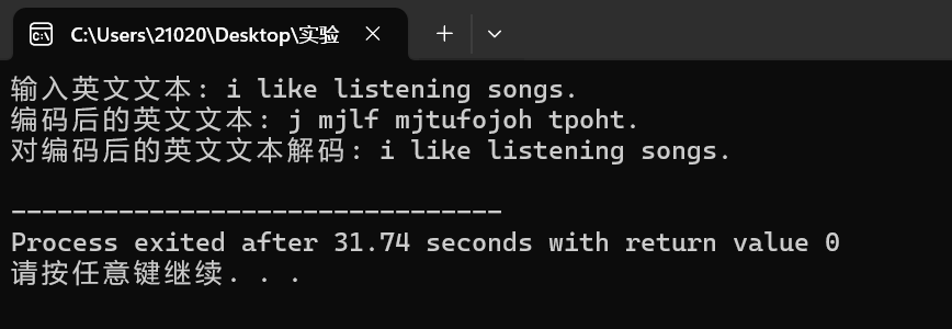 #include <stdio.h> #define N 80 void encoder(char* str); // 函数声明 void decoder(char* str); // 函数声明 int main() { char words[N]; printf("输入英文文本: "); gets(words); printf("编码后的英文文本: "); encoder(words); // 函数调用 printf("%s\n", words); printf("对编码后的英文文本解码: "); decoder(words); // 函数调用 printf("%s\n", words); return 0; } /*函数定义 功能:对s指向的字符串进行编码处理 编码规则: 对于a~z或A~Z之间的字母字符,用其后的字符替换; 其中,z用a替换,Z用A替换 其它非字母字符,保持不变 */ void encoder(char* str) { // 补足函数实现 // ××× while (*str) { if (*str >= 'A' && *str <= 'z') if (*str == 'z' || *str == 'Z') *str -= 32; else *str += 1; str++; } } /*函数定义 功能:对s指向的字符串进行解码处理 解码规则: 对于a~z或A~Z之间的字母字符,用其前面的字符替换; 其中,a用z替换,A用Z替换 其它非字母字符,保持不变 */ void decoder(char* str) { // 补足函数实现 // ××× while (*str) { if (*str >= 'A' && *str <= 'z') if (*str == 'a' || *str == 'A') *str += 32; else *str -= 1; str++; } }