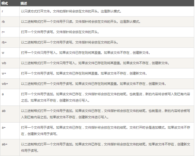 1、读模式 r 以只读方式打开文件。文件的指针将会放在文件的开头。这是默认模式