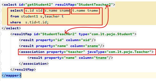 <resultMap id="StudentTeacher2" type="com.lt.pojo.Student">